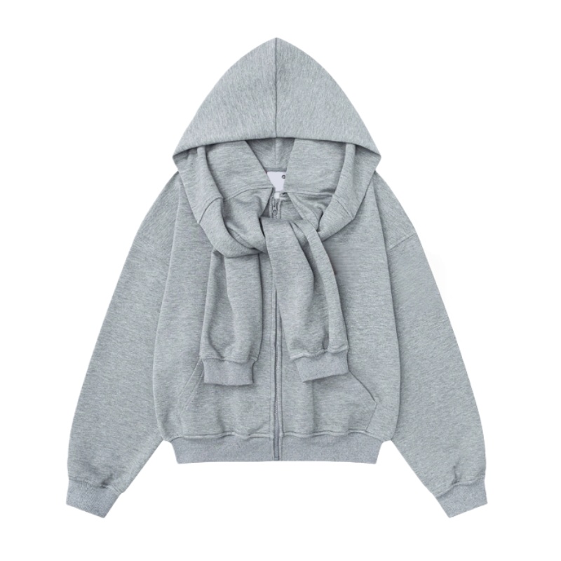 Faux Two-Piece Shawl Casual Grey Hoodie